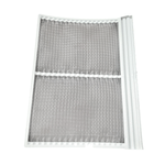 - Material: Moldura em plástico (poliestireno) e tela de nylon (polímero sintético)